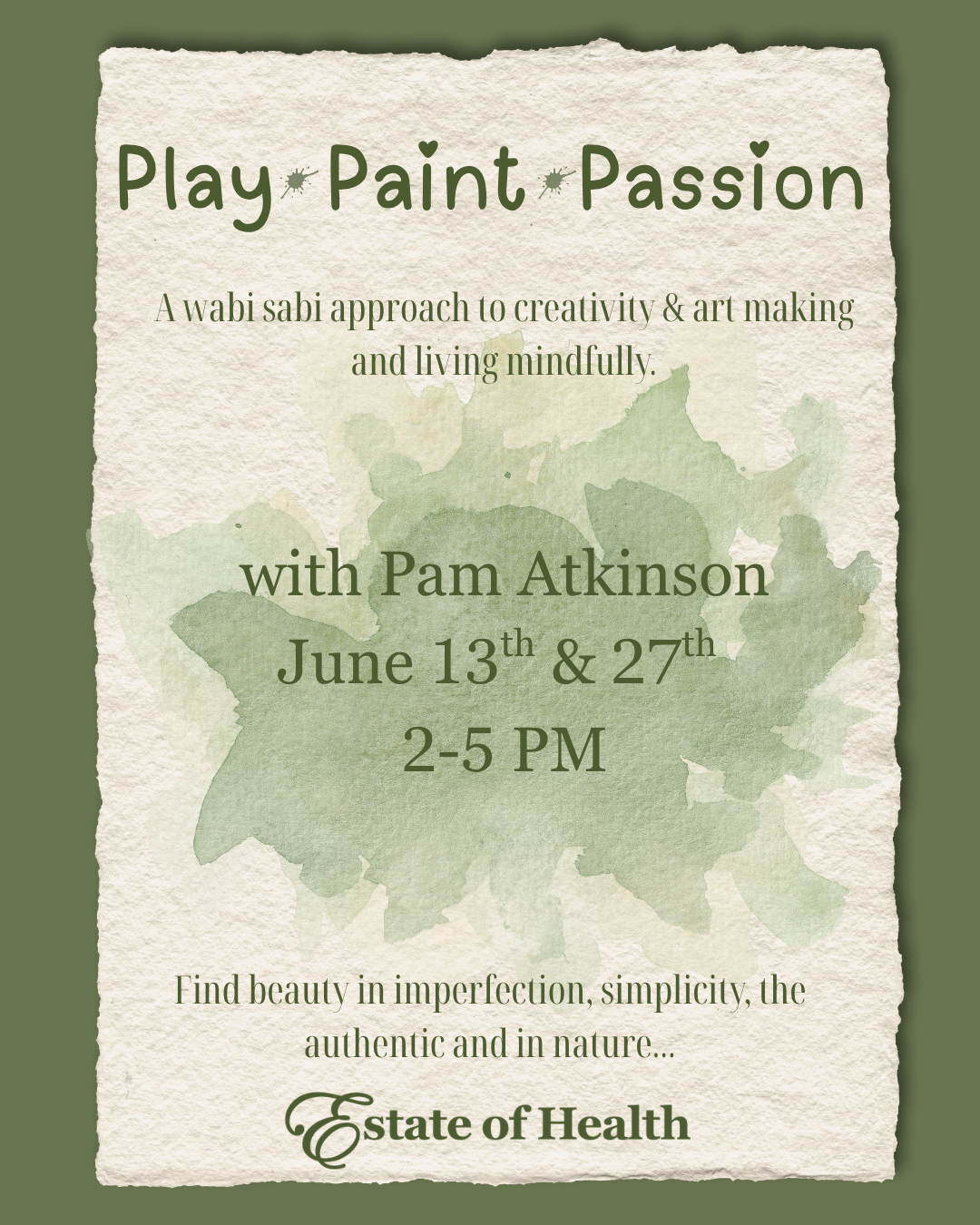 This is an opportunity to experience a wabi sabi approach to creativity/art making and living mindfully. Wabi Sabi is a philosophy on life and art that is centered on finding beauty in imperfection, in simplicity, in the authentic and in nature. It values the handmade and the unique. It nurtures and embraces mindful living, gratitude, […]